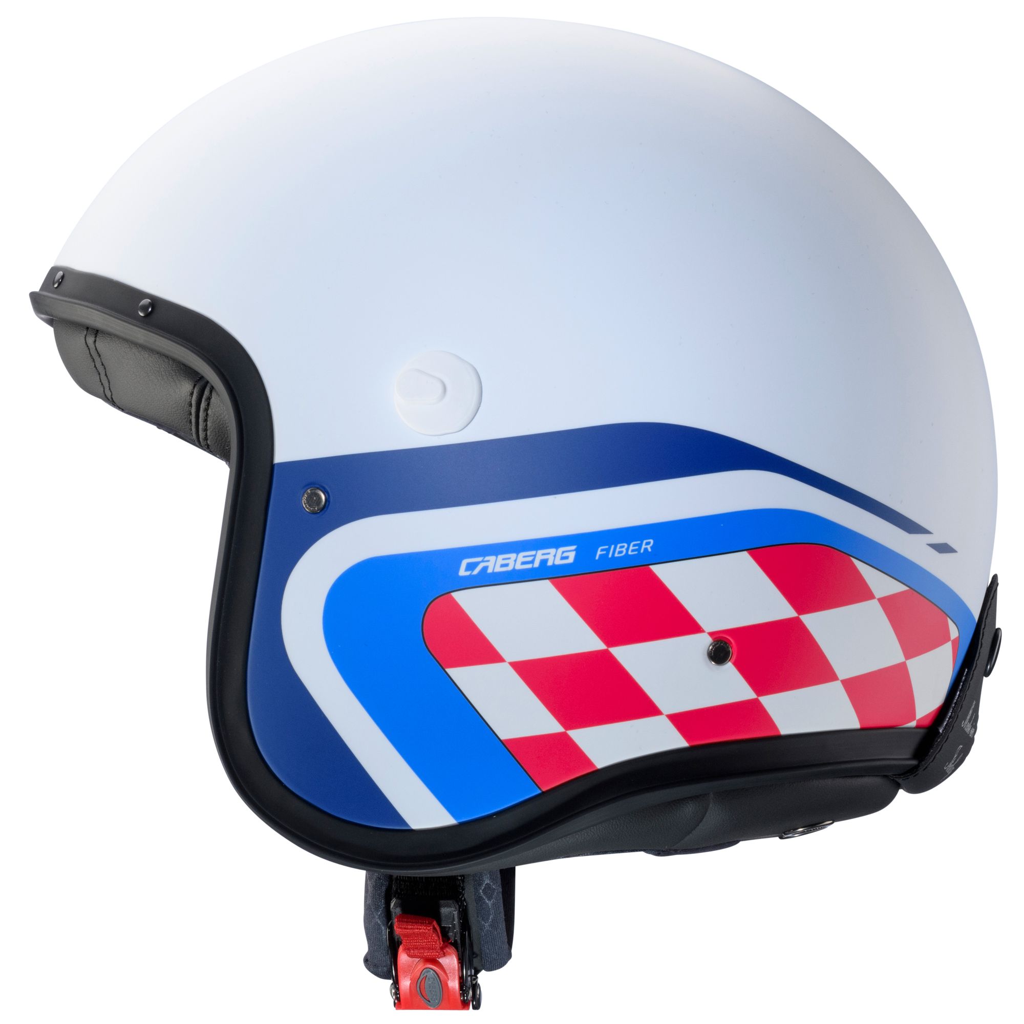 De Caberg Freeride X jethelm met Daytona decor in de kleuren mat wit/blauw-rood heeft de volgende kenmerken: