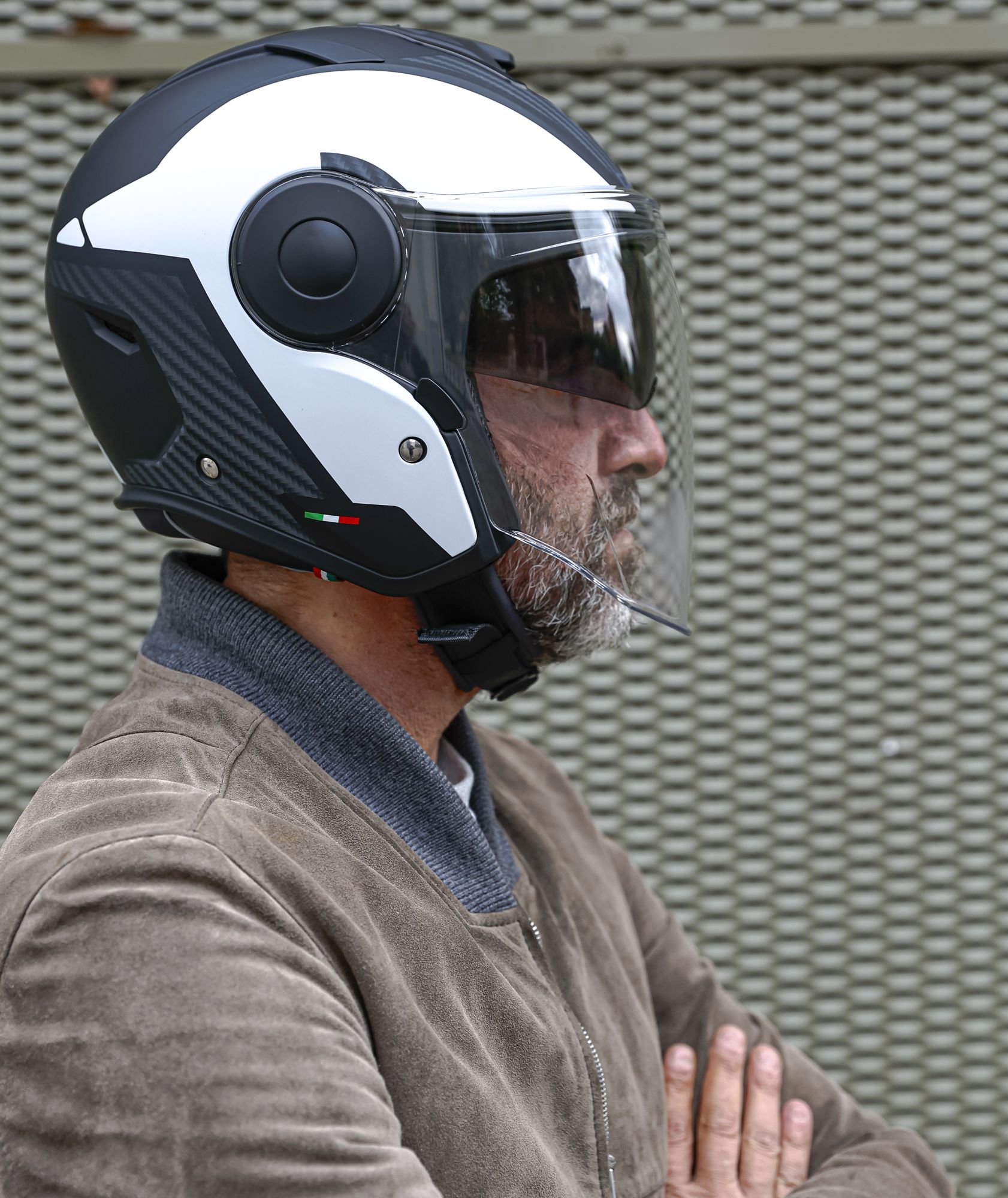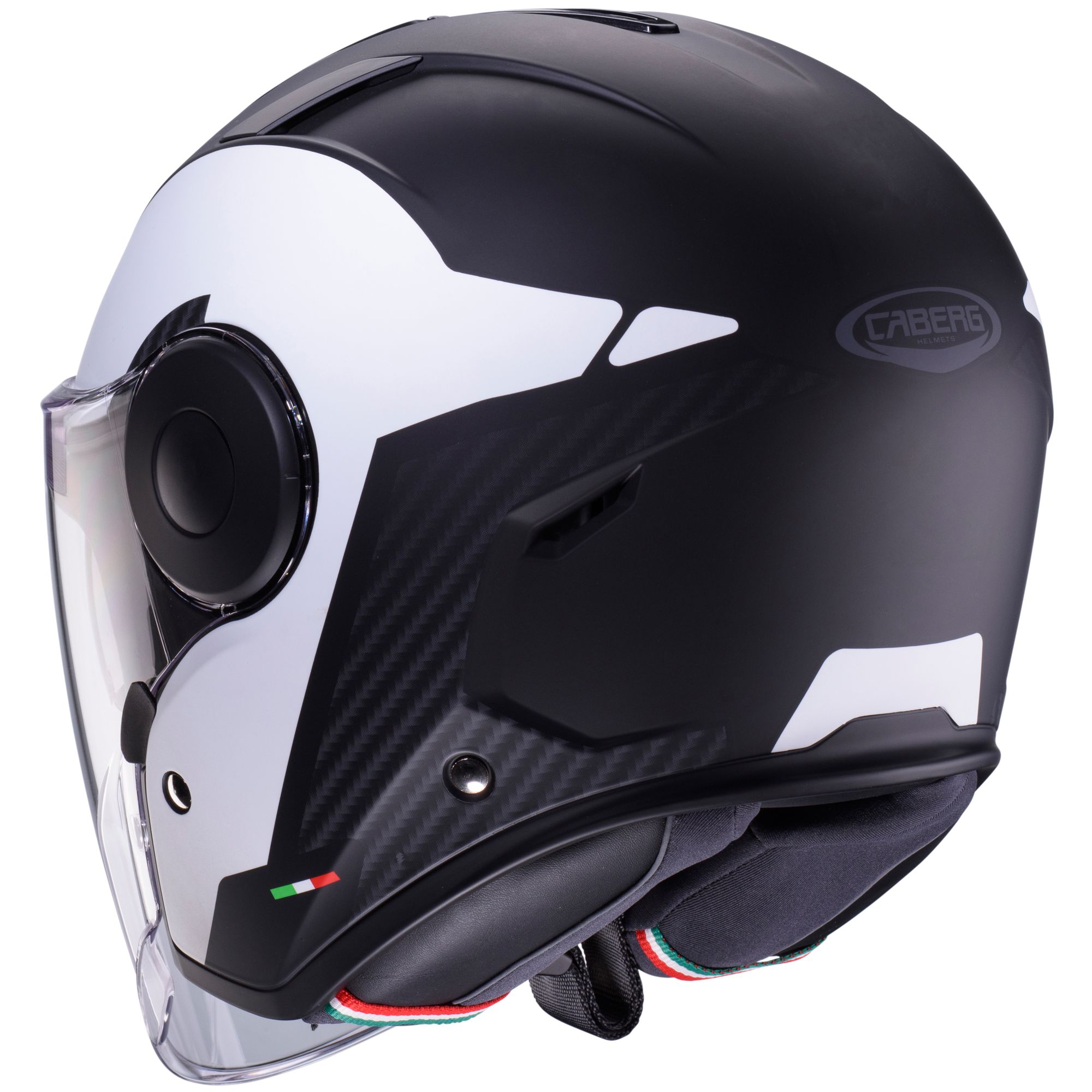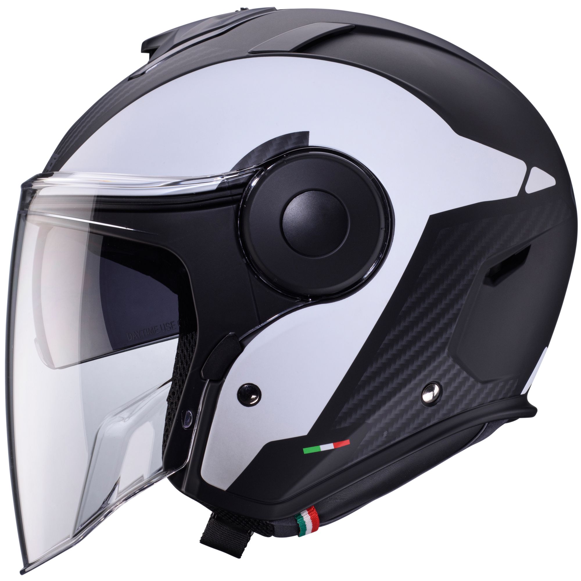 De Caberg Soho jethelm met Milano decor in de kleuren mat zwart/wit heeft de volgende kenmerken:
