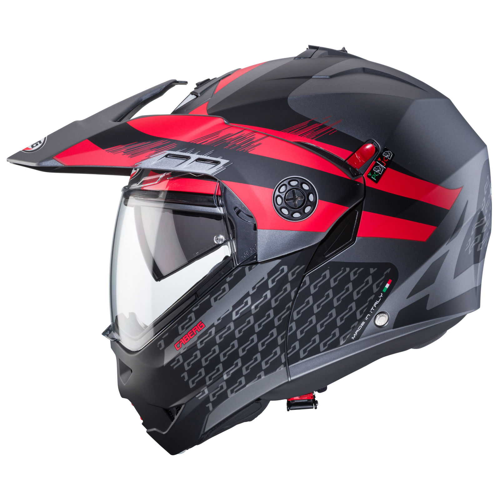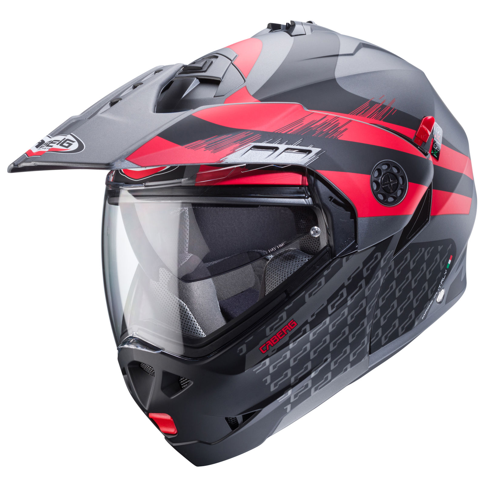 Productinformatie "Caberg helm Tourmax X Sarabe mat-pistool metallic/zwart-rood"