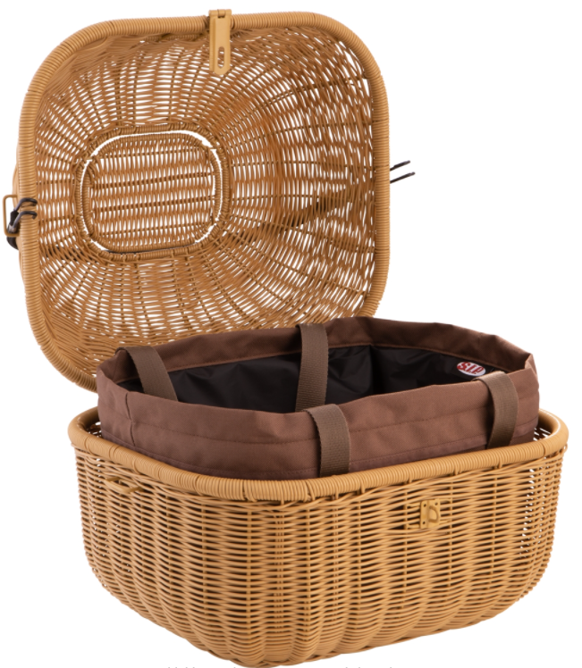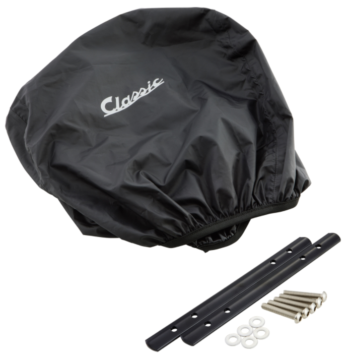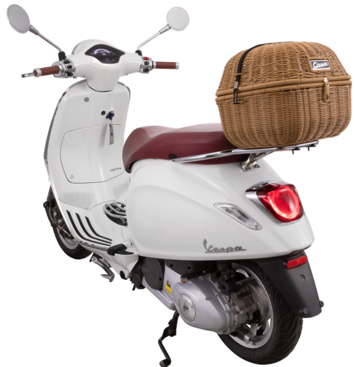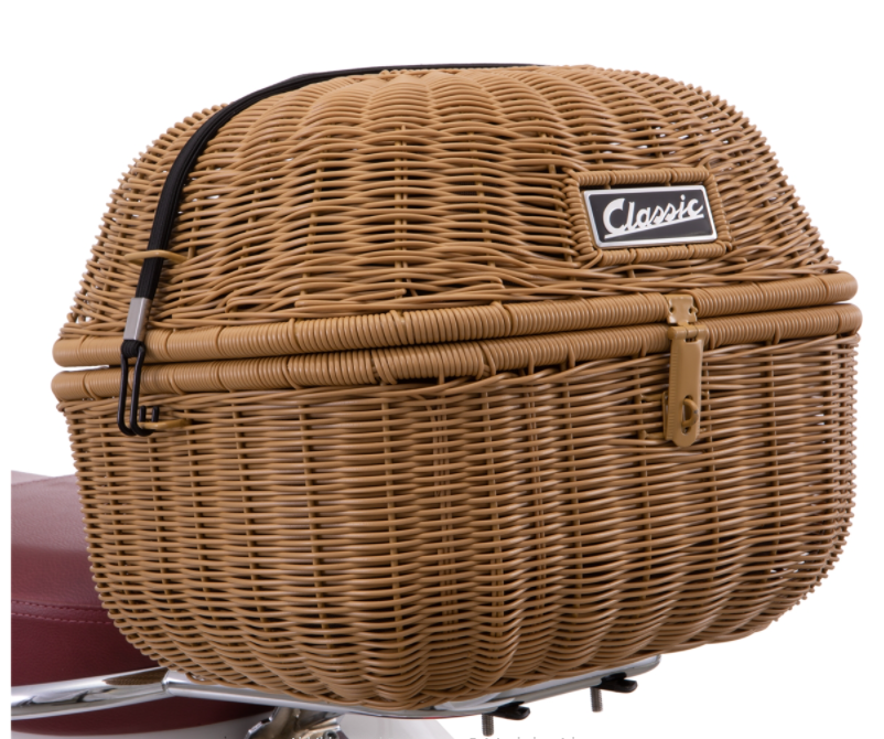 Der Gepäckkorb SIP „Classic“ ist eine schöne Alternative zum normalen kompakten Vespa Top Case und die ideale Ergänzung für alle, die mehr Stauraum benötigen. Die Lebensmittel vom Supermarkt, der Wochenmarkteinkauf oder ein Helm kann in dem 36x32x28 cm großen Korb sicher verstaut werden. Ein Gummiband hält den Deckel auch bei unebener Straße fest verschlossen und die mitgelieferte Regenhülle schützt den Inhalt auch bei einem Schauer. Ein kleines Vorhängeschloss (nicht im Lieferumfang enthalten) kann angebracht werden, um Hab und Gut vor fremden Fingern zu schützen. Im Lieferumfang ist eine extra Innentasche enthalten. Mit knapp 18 Liter Volumen, handlichen Tragegriffen und einem Zuzieh-Verschluss ist sie der perfekte Begleiter für Einkäufe aller Art. Die Tasche kann bequem mitgenommen, gefüllt und anschließend einfach in den Korb gestellt werden. Die „Classic“ Innentasche verfügt über eine kleine Außentasche in der Sonnenbrille, Handy oder Schlüssel ihren Platz finden. Farblich abgestimmt bilden Tasche und Korb eine harmonische Einheit.