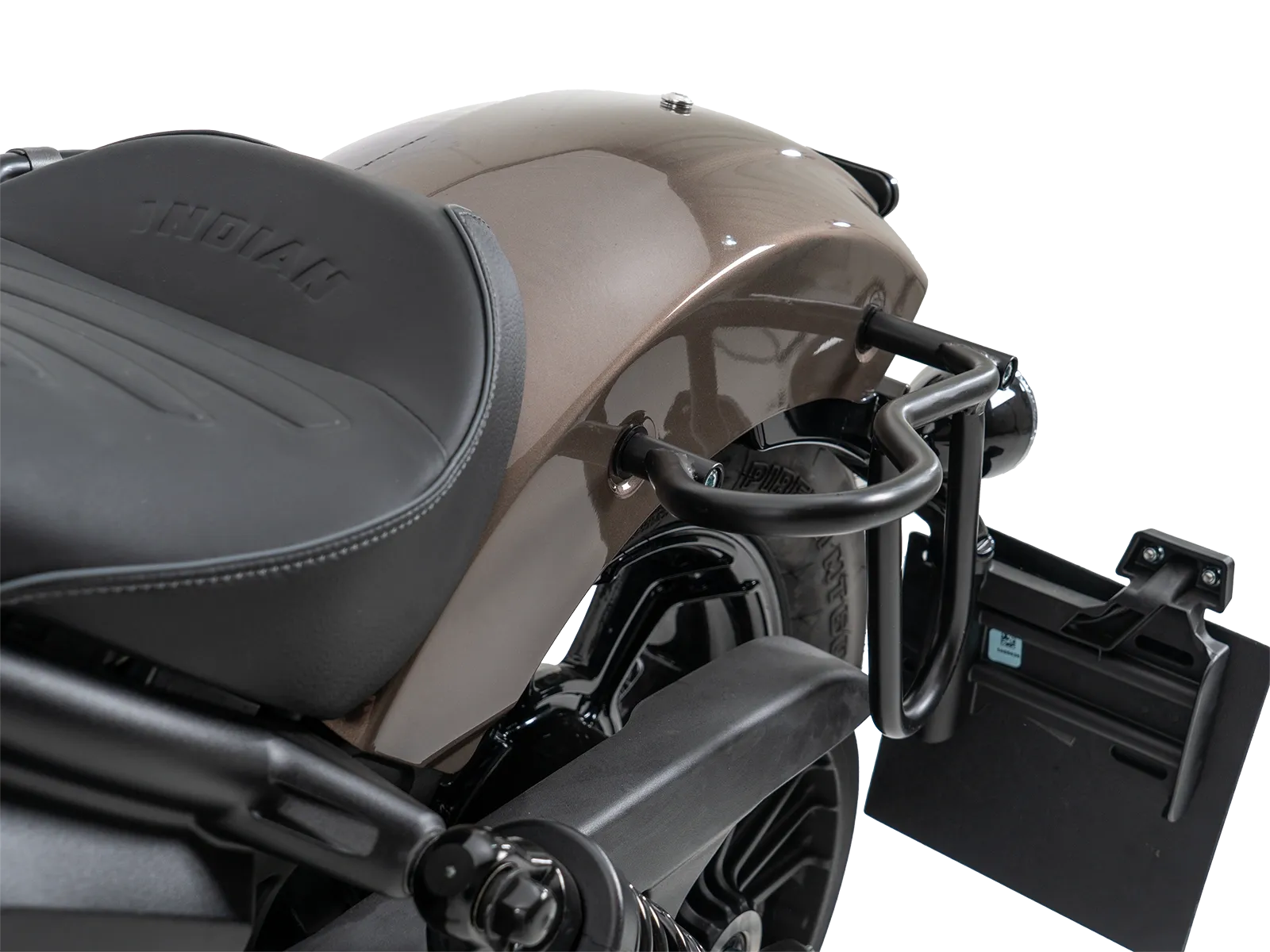 Productinformatie "Leren tassenhouder uitsparing zwart voor Indian Scout Bobber 1250 (25-) Hepco & Becker"
