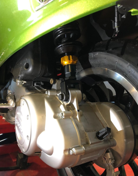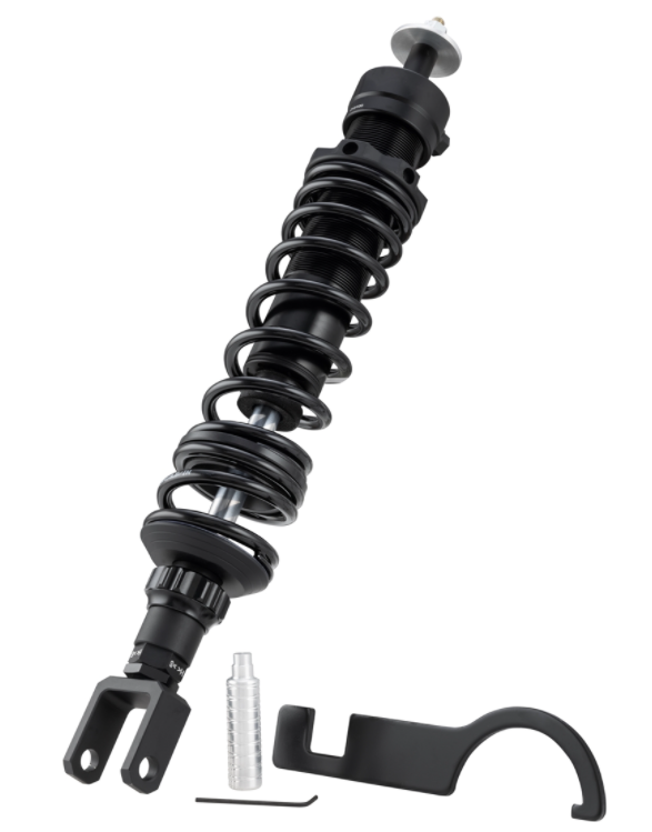 Veervoorspanning: Met de traploos instelbare veervoorspanning kun je de veer van de schokdemper in de basisinstelling harder voorbelasten - de veerkrachten worden zo in een vroeg stadium tegengegaan. Afstelgereedschap wordt meegeleverd.
