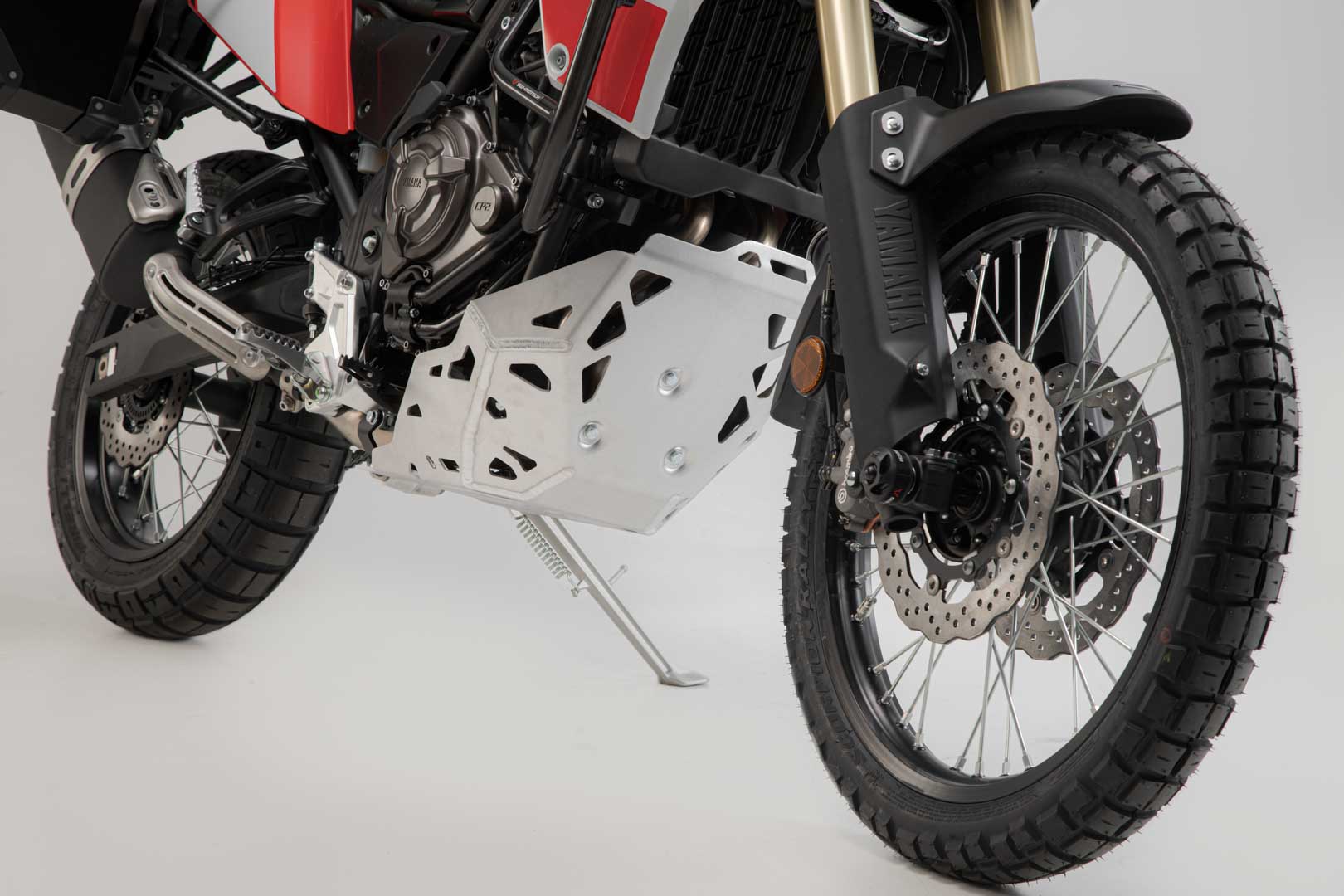 Deze motorbeschermer van 4 millimeter dik aluminium plaat is speciaal ontwikkeld voor de Yamaha Ténéré 700. Hij beschermt het oliefilter en andere motoronderdelen van de crossmotor.