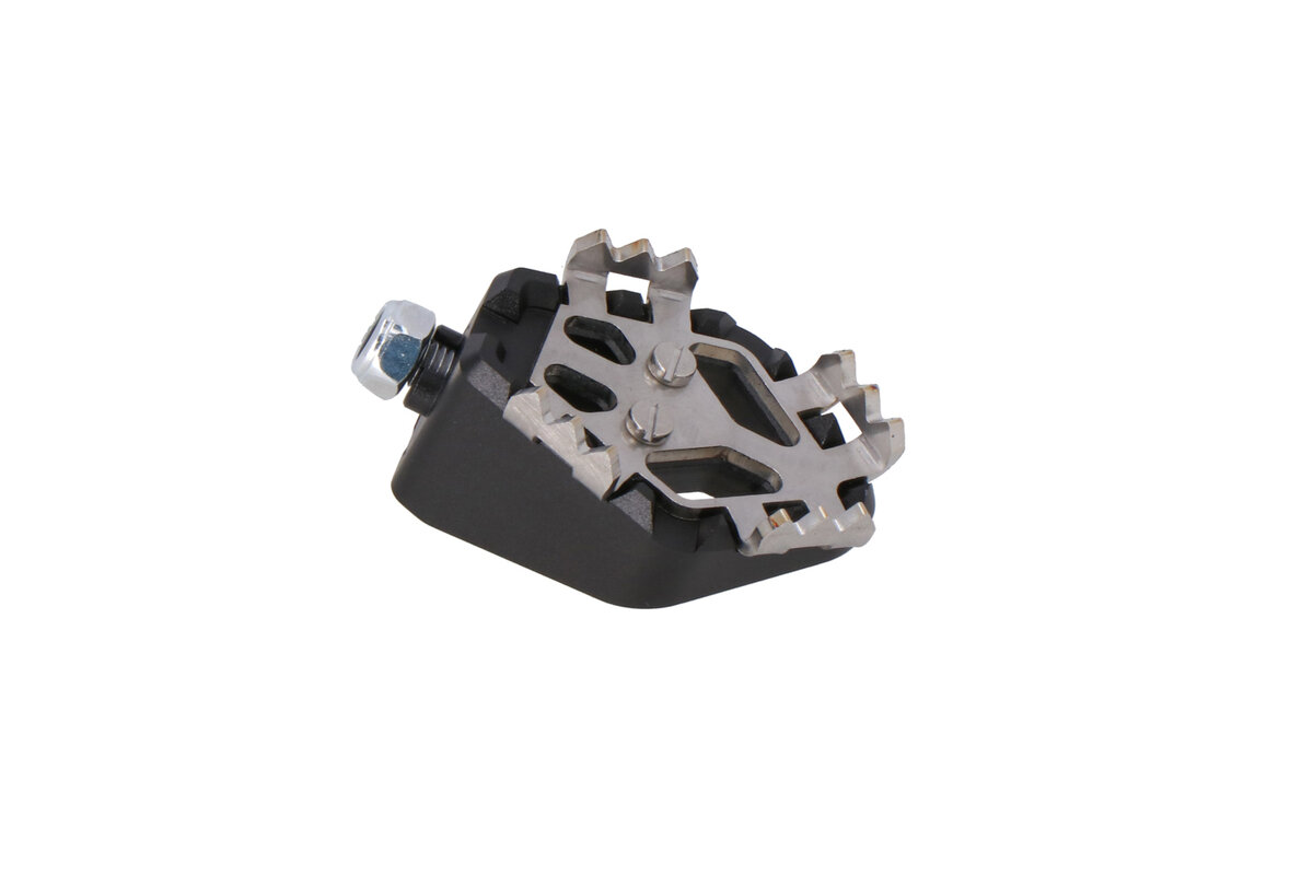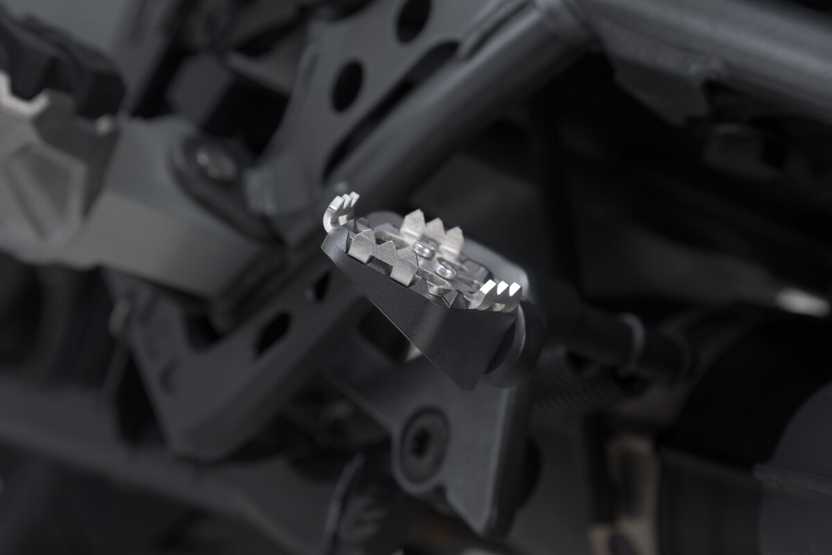 Dit extra onderdeel vergroot het contactoppervlak van de voetremhendel en verbetert zo de handling bij terreinrijden. De Adventure step kan 5 millimeter naar boven worden versteld, zodat je zelfs staand bij de rem kunt en veiliger off-road kunt rijden.