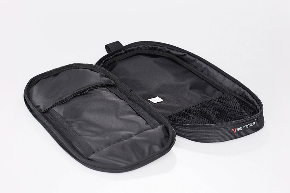 Alles binnen handbereik: papieren, gereedschap of extra batterijen voor fotoapparatuur zijn snel bij de hand wanneer ze zijn opgeborgen in het binnenste dekselvak van de TRAX ADV zijkoffer. SW-Motech Aluminium koffers bieden veel opbergruimte - en precies daarom is het belangrijk om de juiste binnenuitrusting te hebben, zodat je de inhoud van de koffer niet uit het oog verliest. Het gevoerde TRAX ADV M/L binnenste dekselvak is gemaakt van scheurvast en lichtecht 600D polyester. De zak wordt bevestigd aan de bevestigingspunten in het deksel van de TRAX ADV zijkoffers met behulp van de meegeleverde riemen. Het slimme ritssysteem geeft toegang tot de inhoud van de tas, zelfs als deze is vastgemaakt, terwijl een draagriem het eenvoudig maakt om de tas te verwijderen. De hoogwaardige tas heeft een dekselvak met ritssluiting voor extra opbergruimte.