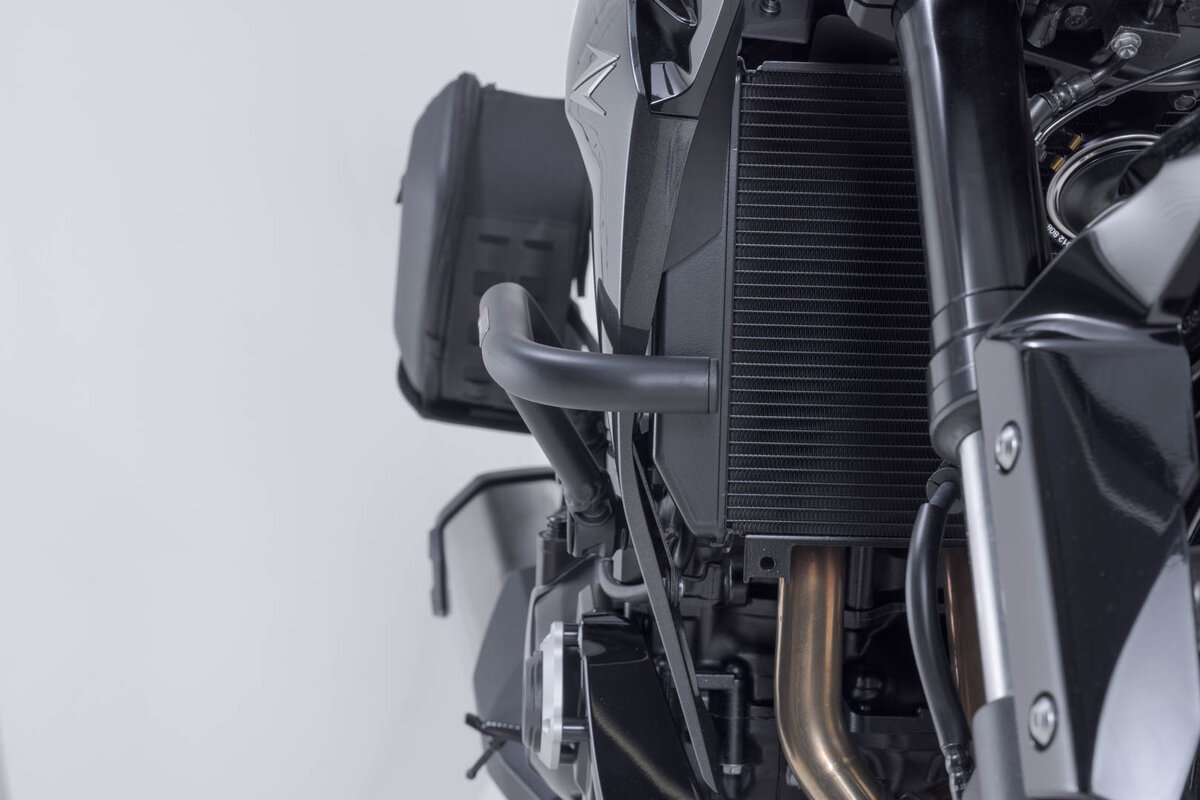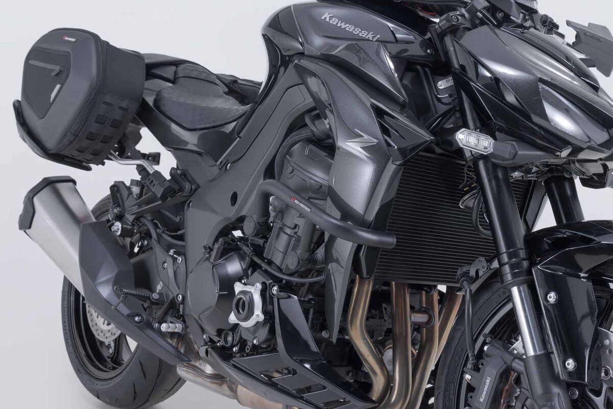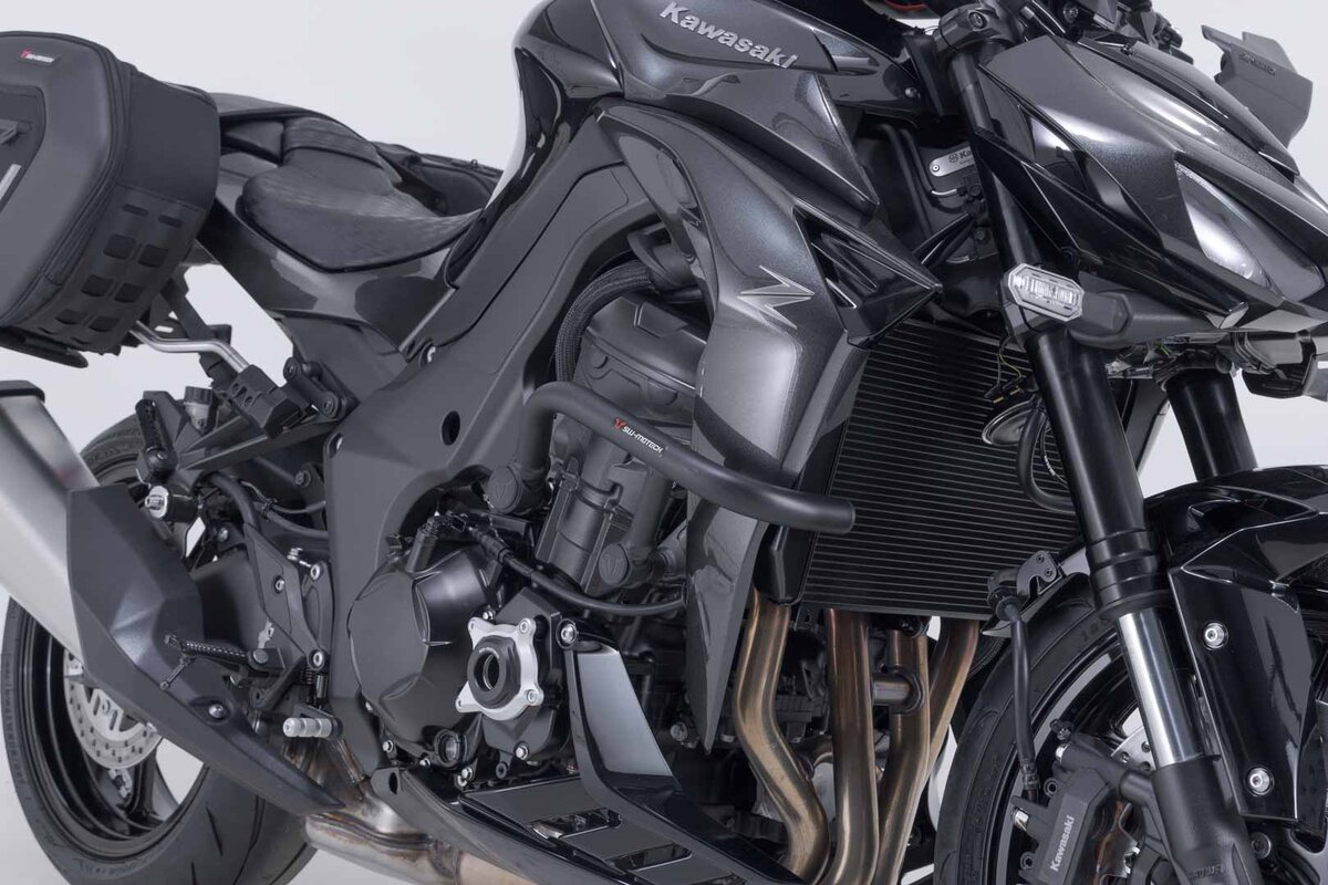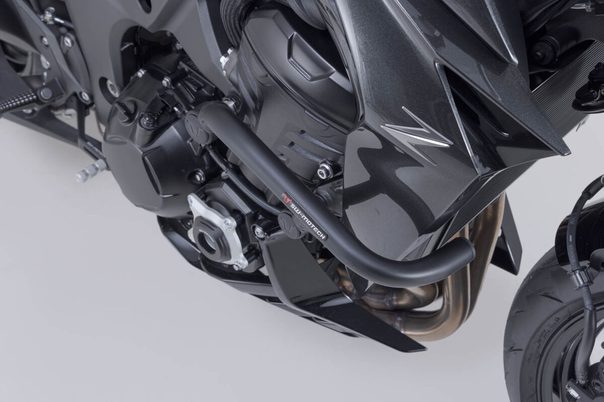 Passend bij de Kawasaki Z1100 zijn de valbeugels gemaakt van stalen buizen met een weer- en corrosiebestendige poedercoating in zwart. De oppervlakteafwerking wordt aangebracht in een ultramoderne faciliteit in de SW-MOTECH fabriek in Brno, Tsjechië.
