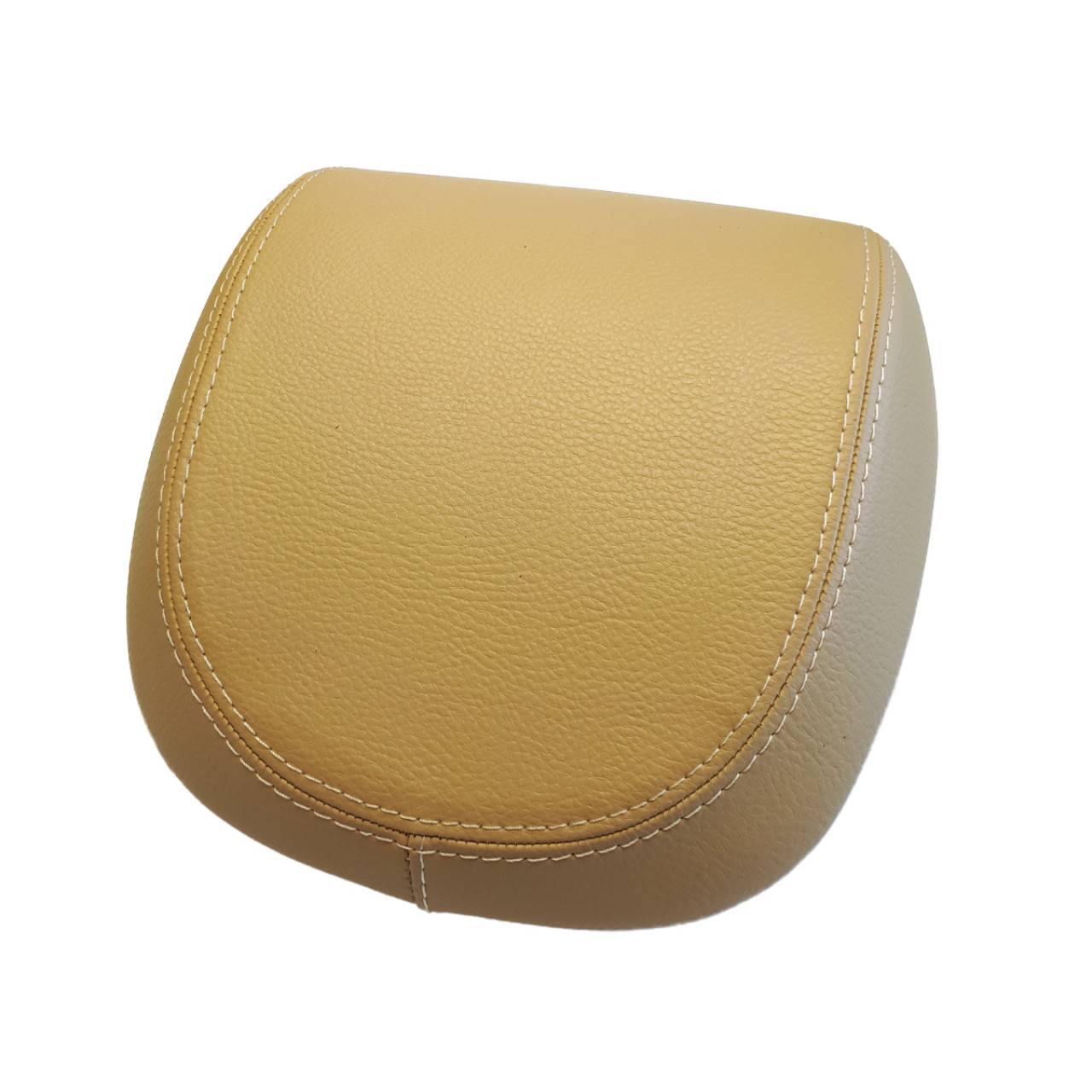 Topkofferset bestaande uit een volledig in de voertuigkleur gespoten topkoffer, een beige rugkussen en een chromen bagagerek.