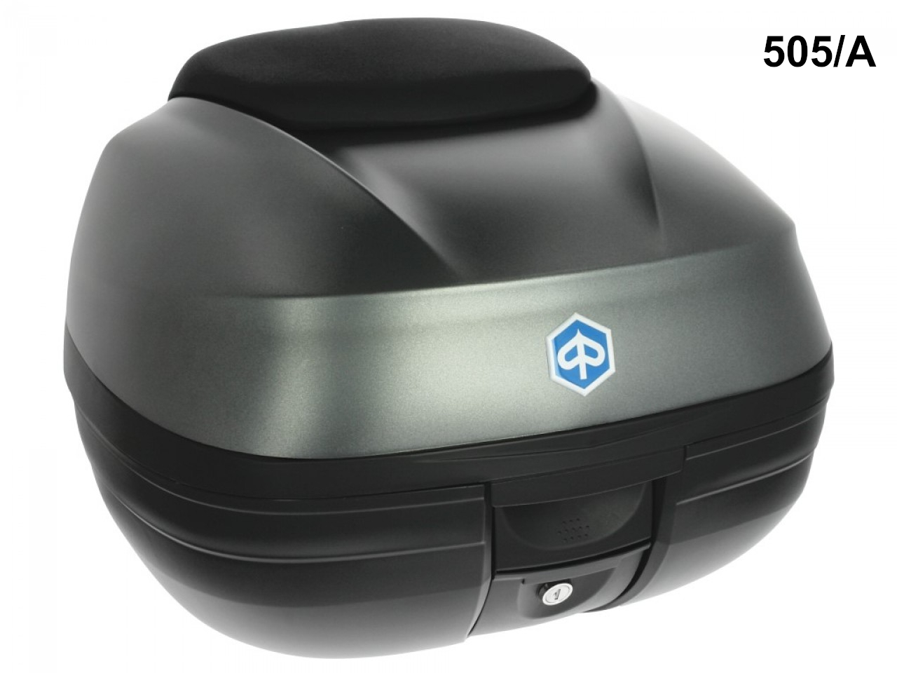Topkoffer met snelsluiting. Ruimte voor een modulaire helm. Bovenschaal gespoten in dezelfde kleur als het voertuig. Compleet met comfort