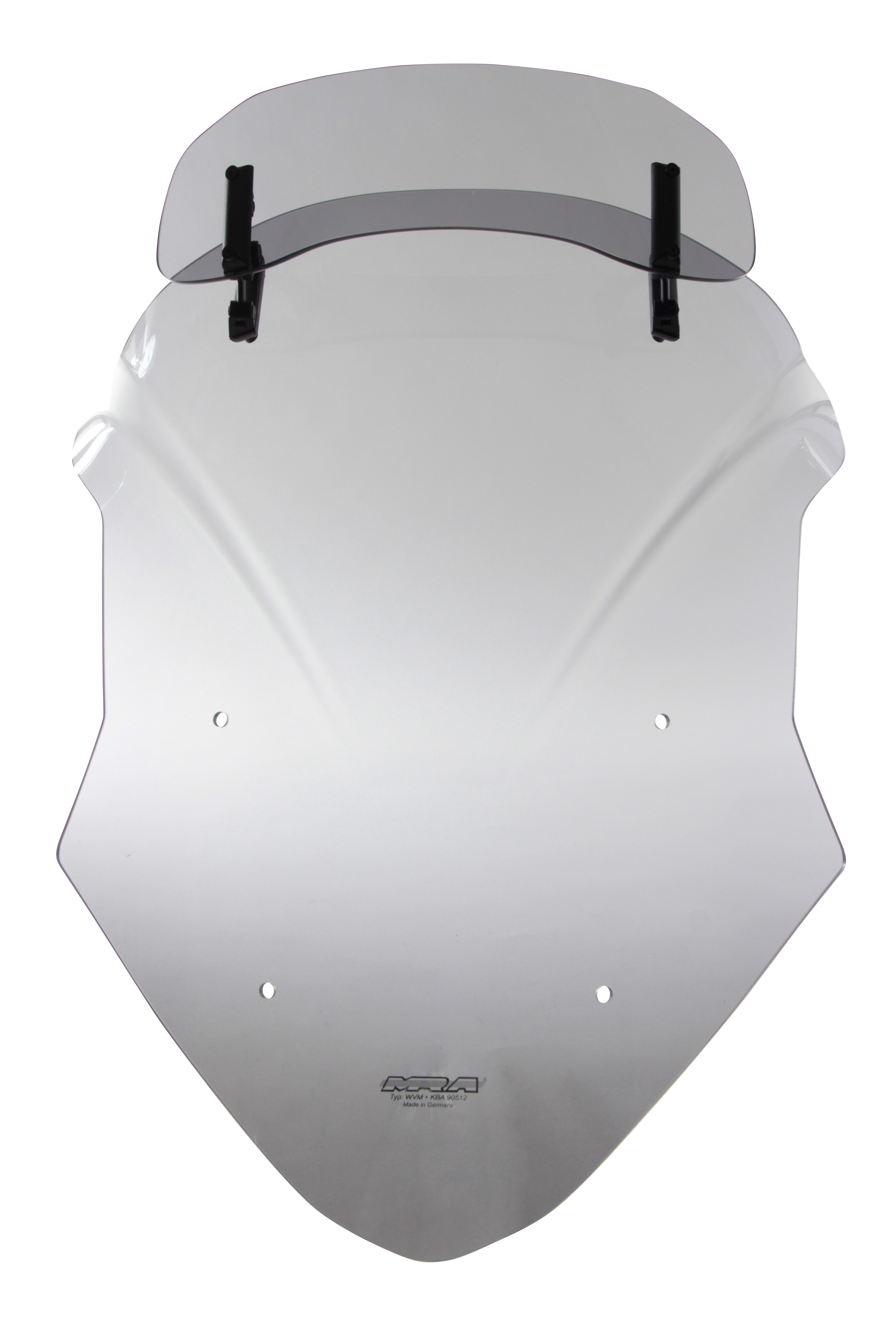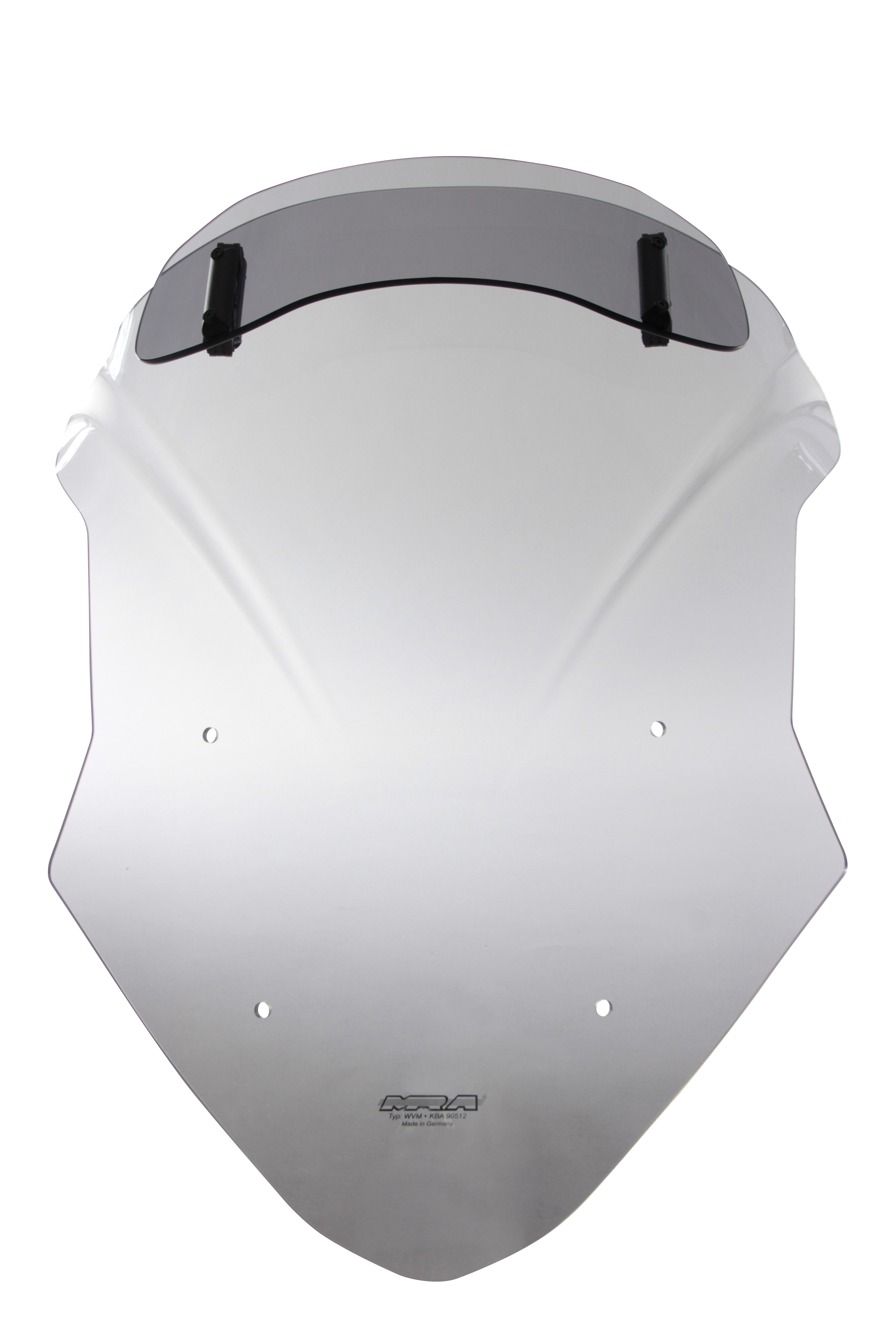 Het Variotouring windscherm (VTM) van MRA heeft een in zeven richtingen verstelbare spoiler aan de bovenzijde van het windscherm, die achter het windscherm uitmondt en zo de rijder van winddruk ontlast. Dit alles met minder turbulentie tegelijkertijd. In de hoogste stand bereikt de schijf een totale lengte van 54 cm. Het Variotouring-scherm is verkrijgbaar in kleurloos en rookgrijs.
