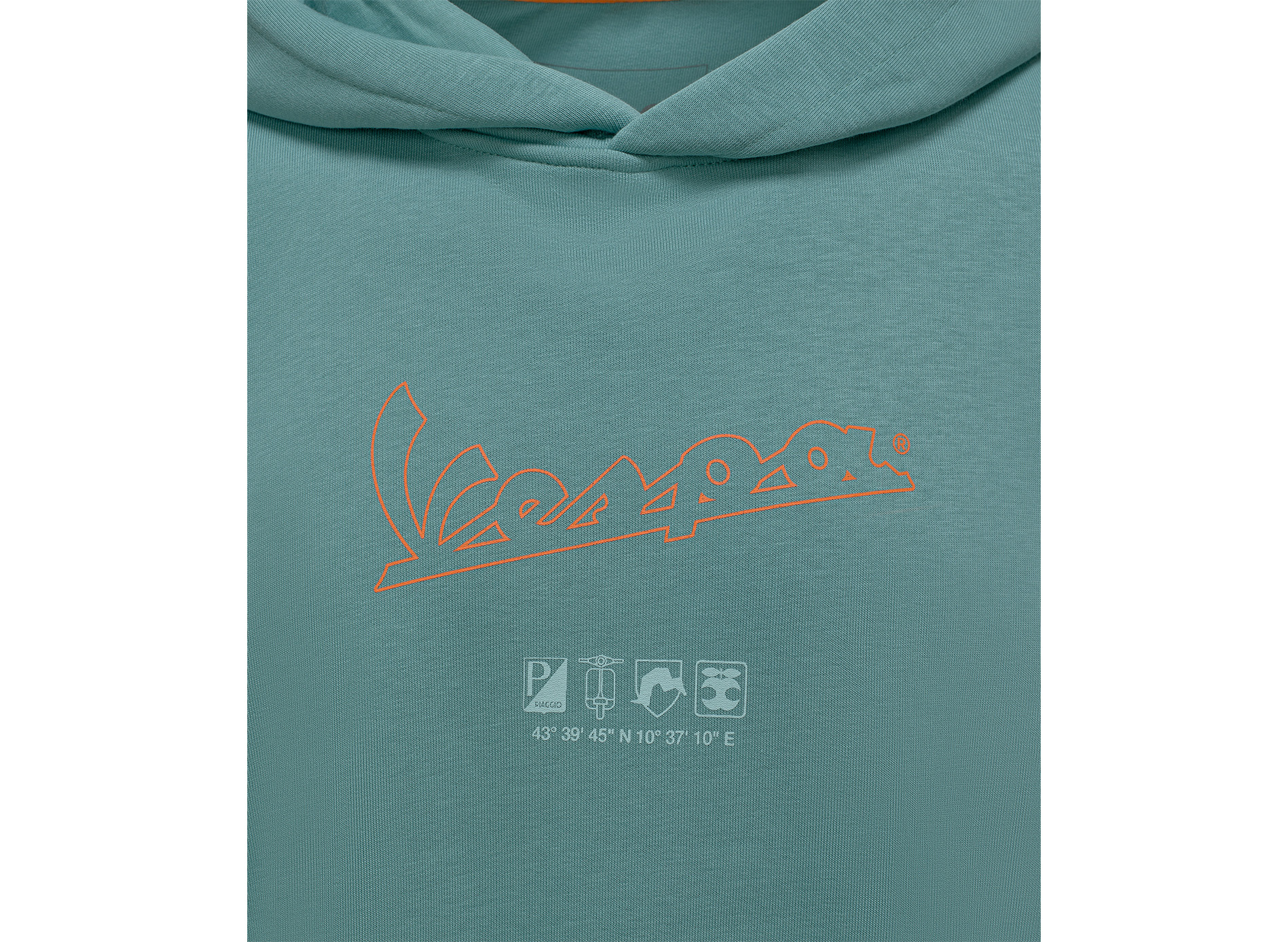Bequemer und warmer Hoodie aus weichem, gebürstetem Baumwollgewebe. Das kultige Vespa-Logo und...meer