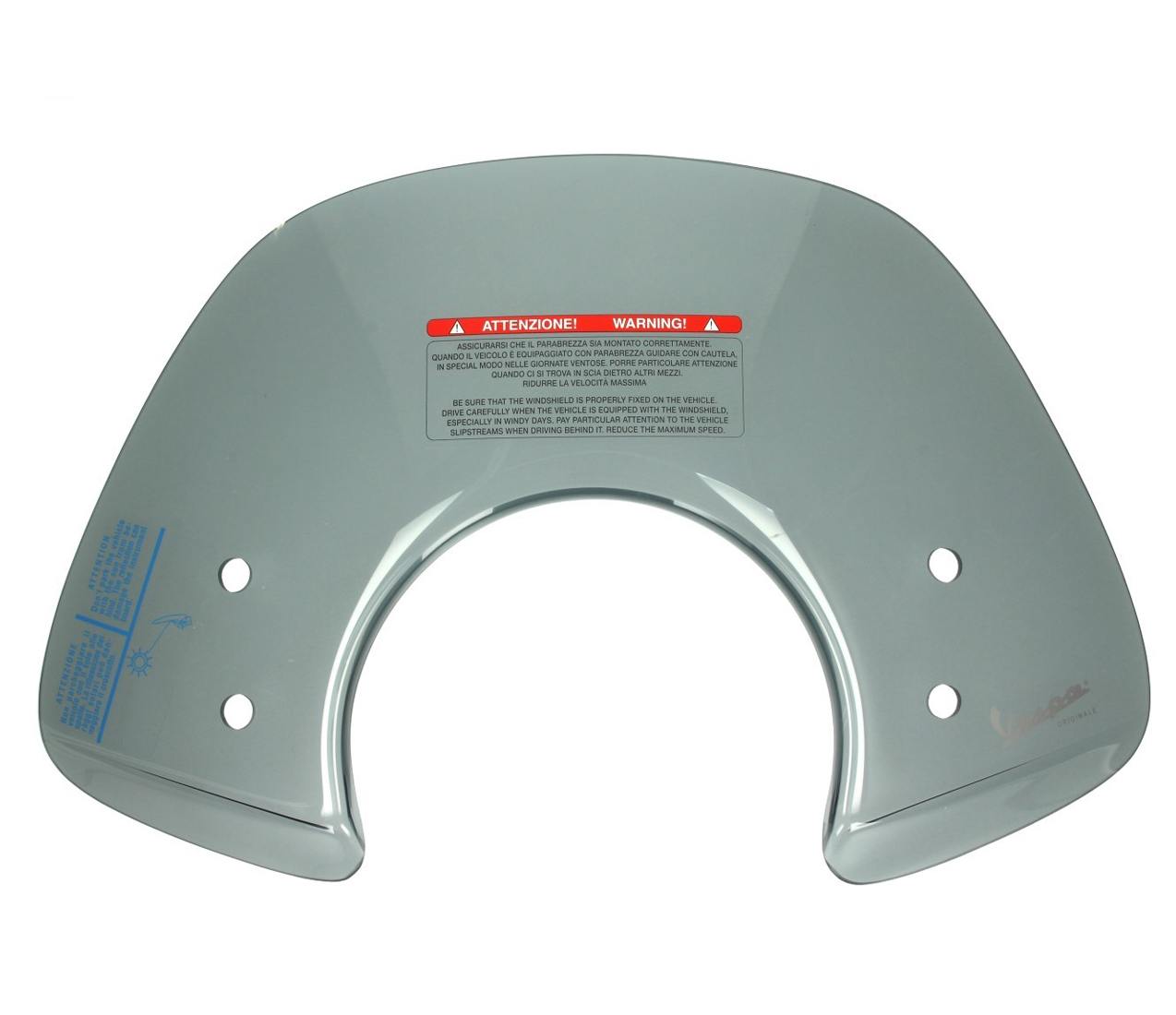 Originele Vespa sport windscherm "Cruiser" rook grijs getint voor scooter Vespa GTS Super. Sportieve voorruit in 4 mm dikte gemaakt van slag- en krasvast methacrylaat.