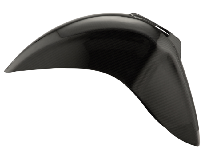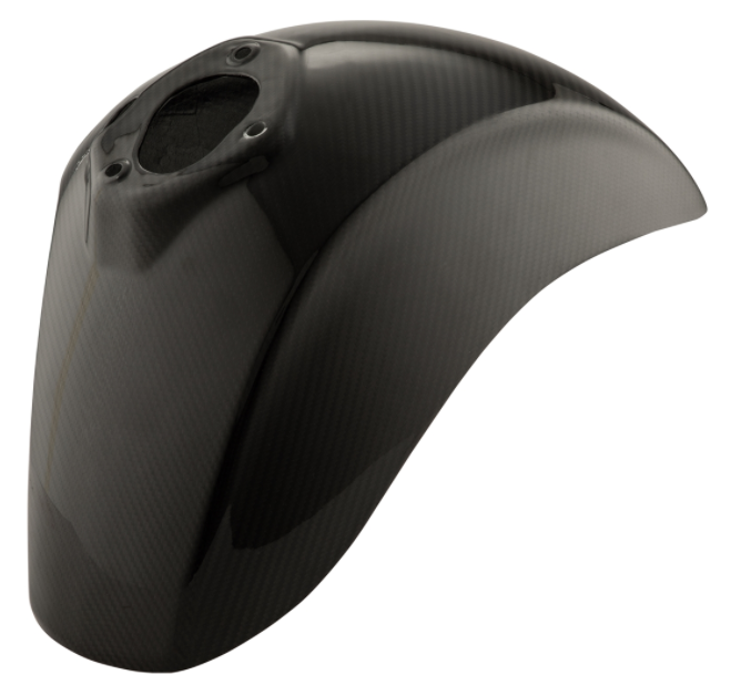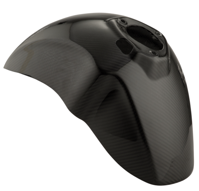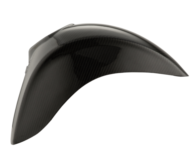 Carbon onderdelen zijn niet alleen in trek vanwege hun robuuste eigenschappen en lichte constructie; met carbon add-on onderdelen suggereert elke tweewielerliefhebber onmiddellijk een verband met de motorsport. De attributen en de look die carbon met zich meebrengt, zorgen voor een coole race-look. Een mooi en prachtig afgewerkt voorspatbord, het enige minpuntje is de uiterst ingewikkelde vervanging. Maar als je je beschadigde spatbord toch moet vervangen, moet je zeker de carbonversie overwegen. De originele onderdelen dienden als basis voor de mallen, zodat wij een goede pasvorm kunnen garanderen. De carbononderdelen zelf worden met behulp van speciale mallen vervaardigd en gelamineerd.