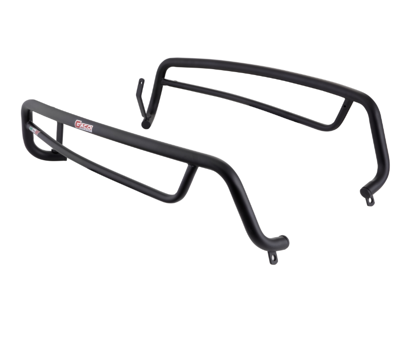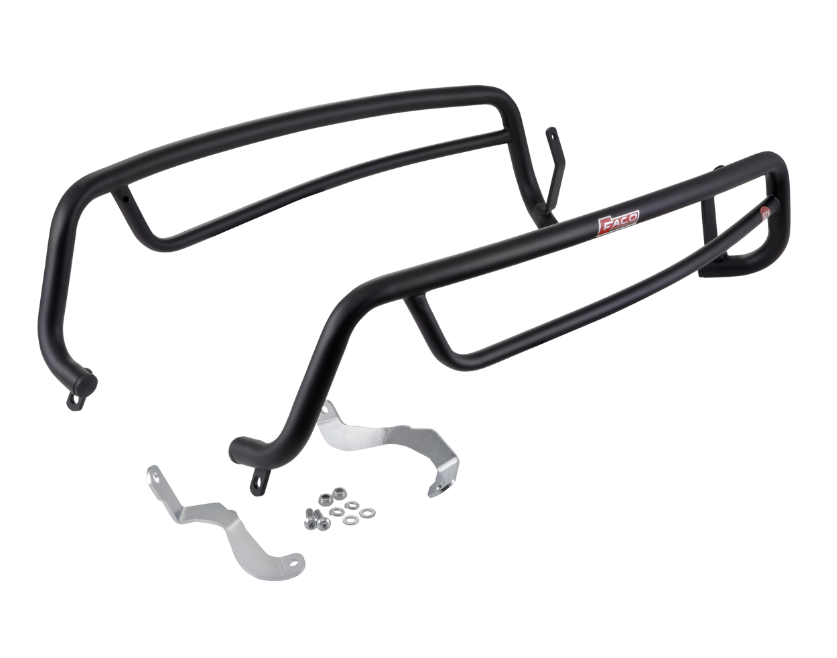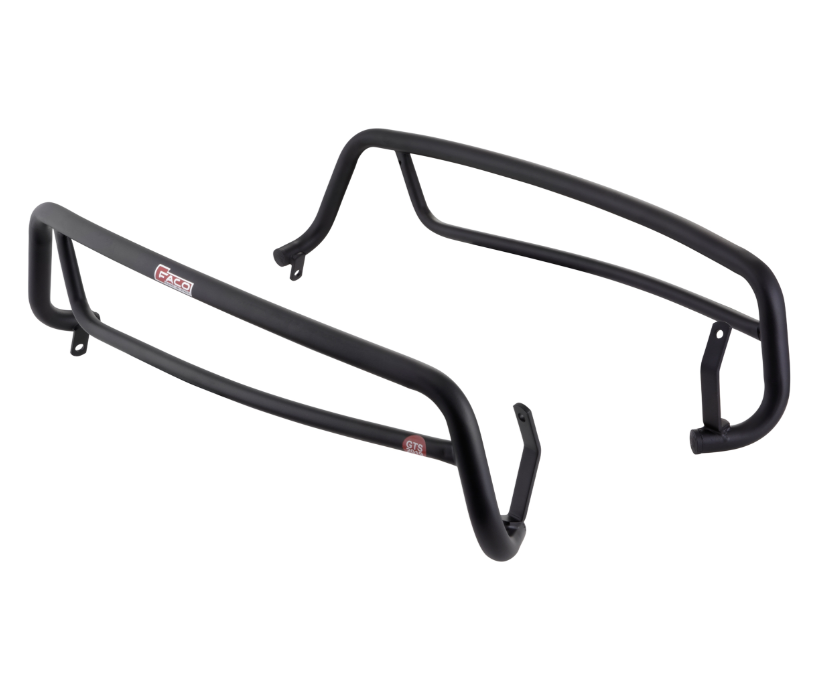 De valbeugels voor de zijkap zijn gemonteerd aan de onderkant van de Vespa, zodat de beenruimte van de duopassagier niet wordt beperkt. Aan de achterkant, onder de nummerplaathouder/spatbordbeschermer, is een bevestigingsplaat gemonteerd waaraan de stang is bevestigd. De bevestiging maakt de valbeugels niet erg stabiel en het beschermende effect bij een ernstige val is niet optimaal.