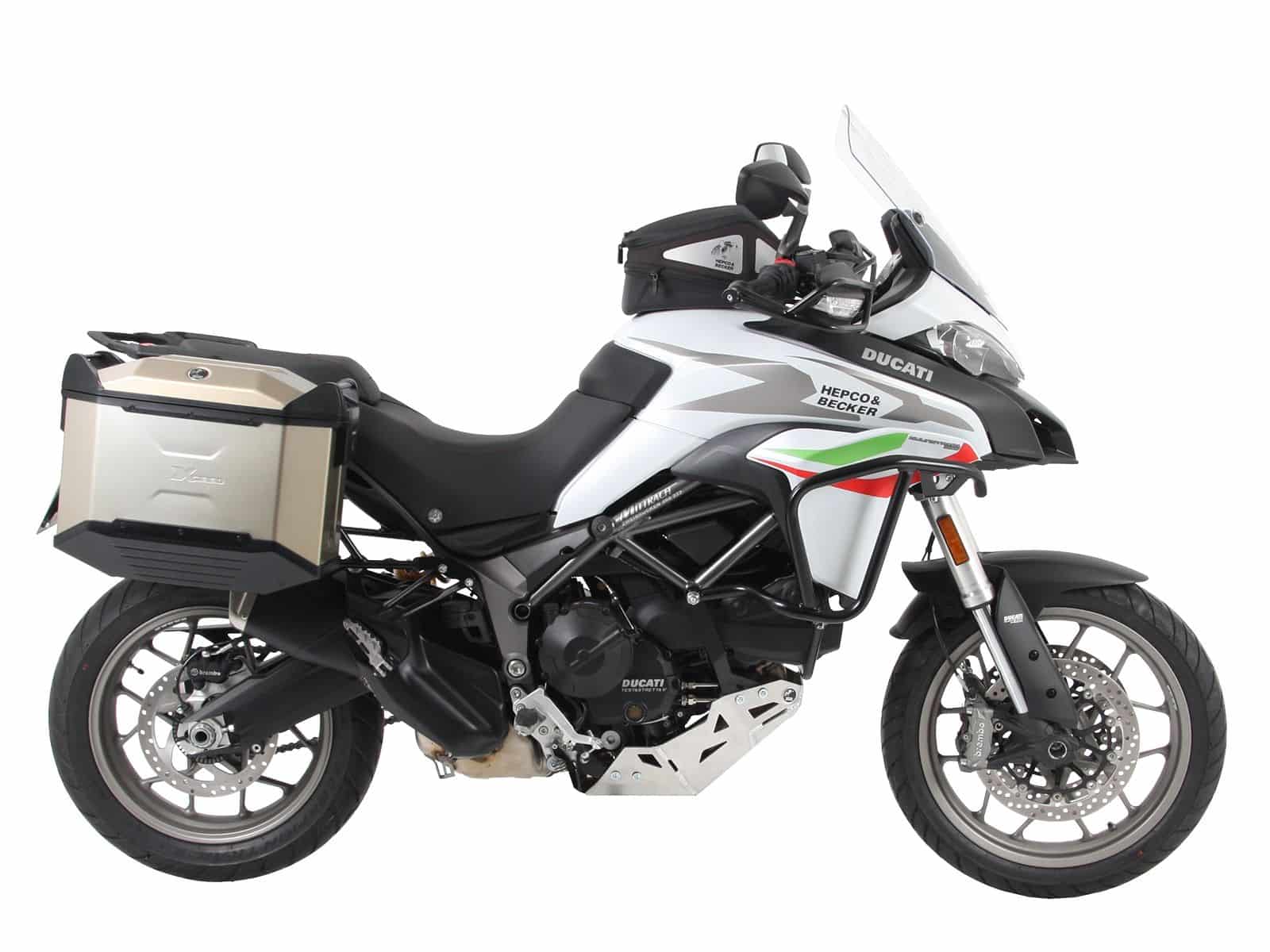 De geschroefde zijkofferdragers van Hepco & Becker worden stevig aan het motorframe bevestigd. Bijna alle touring zijkoffersystemen van Hepco & Becker passen op deze drager. De koffers worden op de drager bevestigd met een metalen slot om diefstal te voorkomen. Hiervoor is een extra slotadapter nodig. Deze wordt normaal gesproken bij de zijkoffers geleverd. Deze slotadapter wordt rechts en links van de drager aan de achterkant vastgeschroefd en houdt het kofferbevestigingsslot vast.