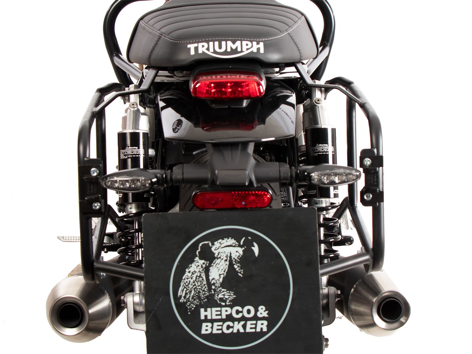 De geschroefde zijkofferdragers van Hepco & Becker worden stevig aan het motorframe bevestigd. Bijna alle touring zijkoffersystemen van Hepco & Becker passen op deze drager. De koffers worden op de drager bevestigd met een metalen slot om diefstal te voorkomen. Hiervoor is een extra slotadapter nodig. Deze wordt normaal gesproken bij de zijkoffers geleverd. Deze slotadapter wordt rechts en links aan de achterkant van de drager geschroefd en vormt de bevestiging voor het kofferbevestigingsslot.