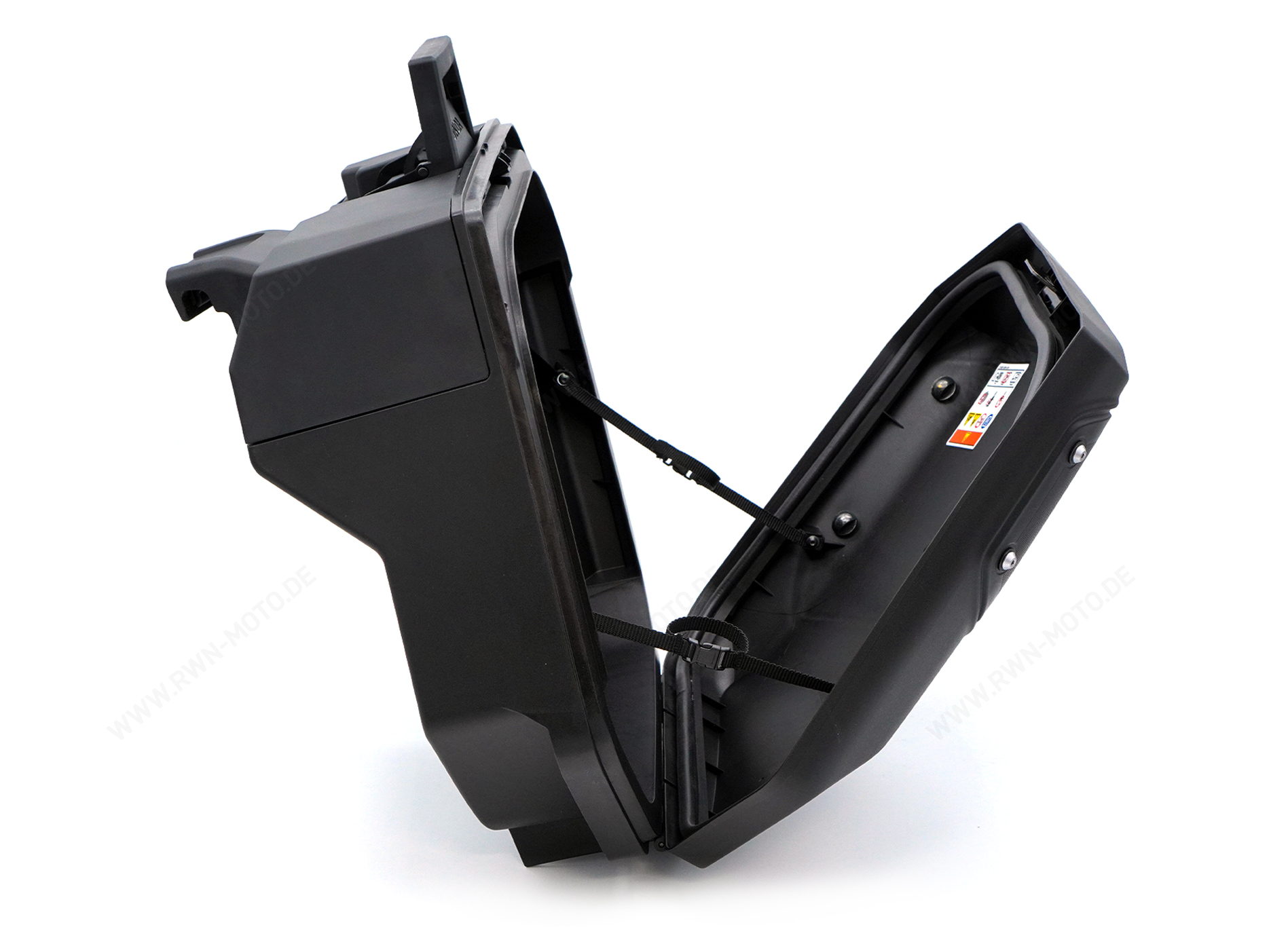 Opmerking: De afbeelding toont de zijkoffer met de aluminium kuipset. Deze kan op verzoek apart worden besteld (zie accessoires).
